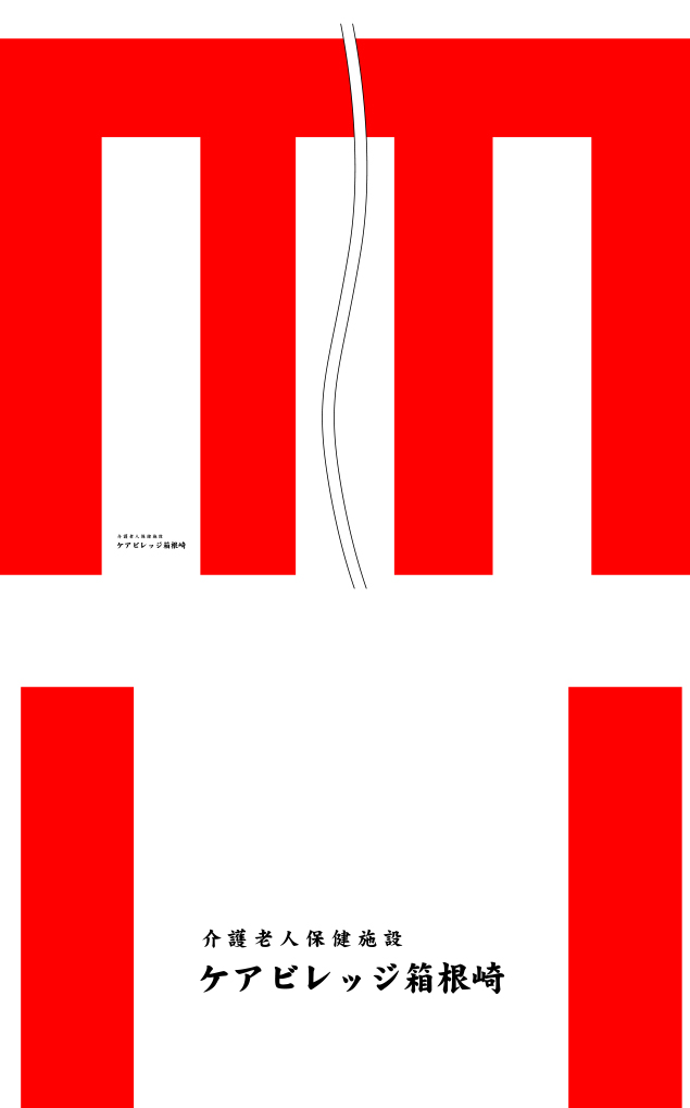 名入れの仕上がり原稿イメージを修正いたしました。横組みで「介護老人保健施設 ケアビレッジ箱根崎」とプリント加工をいたします。「介護老人保健施設:の文字の方を「ケアビレッジ箱根崎」に比べて小さくしてあります。生地は木綿、サイズは高さ180cm*横幅5間の仕様となります。文字の書体は楷書体で作成しております。修正点、変更点などございましたらご連絡ください。画像をクリックすると拡大表示されます。